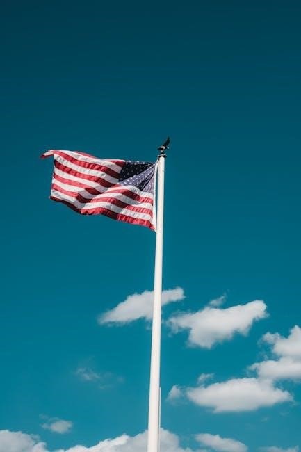 Educational PDFs explain how the flag symbolizes liberty and justice, core tenets of the American creed․ The colors themselves – red, white, and blue – carry specific meanings, representing valor, purity, and vigilance, respectively․ The stars represent the states united as one․